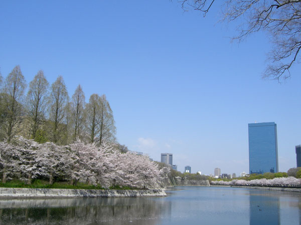桜の木は、大阪城公園の全体にありますが、外堀の南・東と西の丸庭園に多く、内堀と本丸は少なめのように思います。