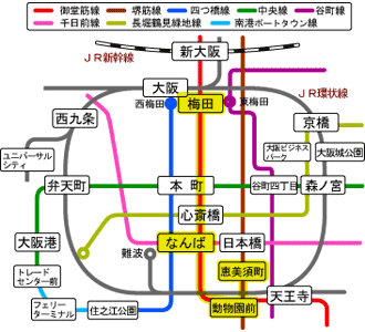 地下鉄御堂筋線 ・梅田駅 ・動物園前駅 堺筋線 ・恵美須町駅