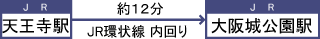 [ 天王寺駅から大阪城公園駅まで約12分 料金:約170円 乗り換え:0回 乗車時間:約12分 ]