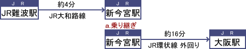 [ JR難波駅から大阪駅まで約24~26分 料金:約210円 乗り換え:1回 乗車時間:約20分 ]