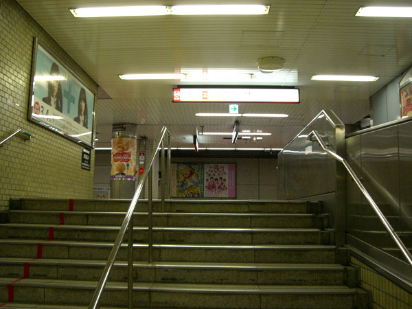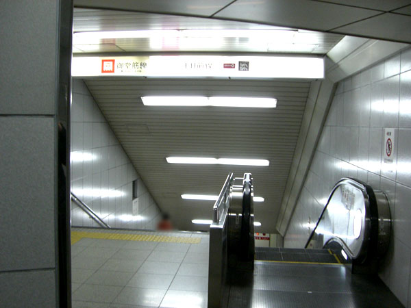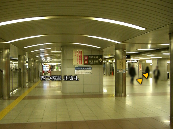 1.四つ橋線から千日前線ホームに行きます。(四つ橋線ホームから一度「北改札」のある上の階に上がります。)