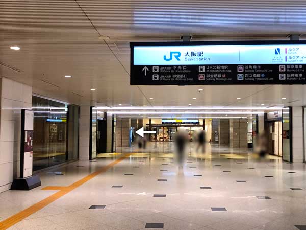 JR大阪駅の地下改札から大阪メトロ御堂筋線の梅田駅への乗り換えは、地上に出なくても地下通路を利用して行くことができるので便利です。