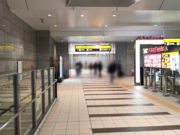 5.次は、通路の正面に「ルクア」の出入口が見えます。ここからルクアの地下フロアに入って行きます。