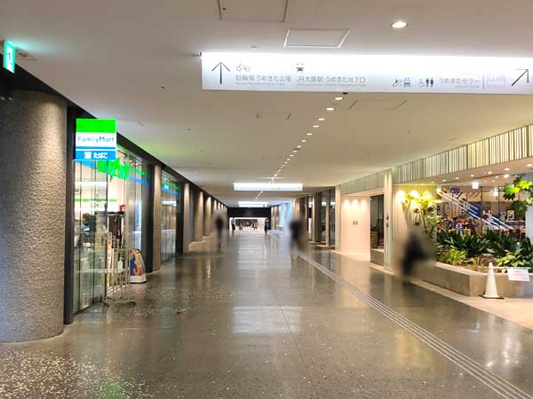 8.左に行くとすぐ通路の左側にコンビニがあります。(通路の右側はUMEKITA CELLARになります。)