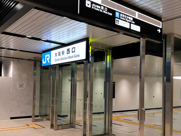 大阪メトロ四つ橋線の西梅田駅からJR大阪駅の地下改札への乗り換えは、JR大阪駅の1階の西口改札内にある連絡通路を利用しています。(途中、信号ありの横断歩道を渡る必要があります。)