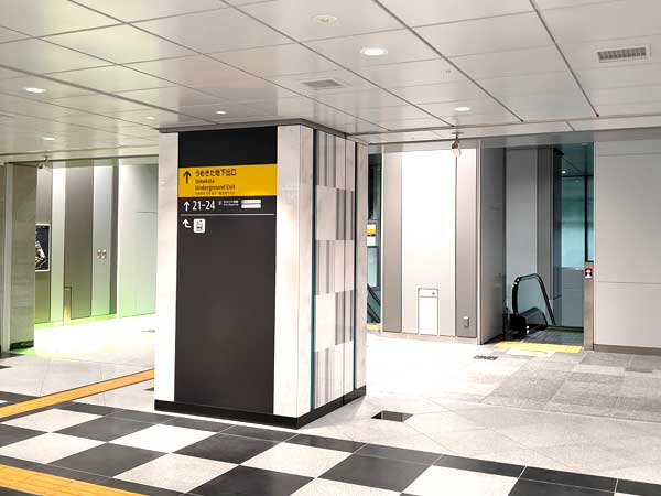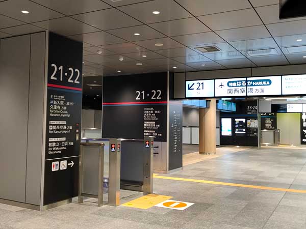 ・地下ホーム(21~24番)は「うめきた地下口」の改札内から地下2階に降りて行きます。
