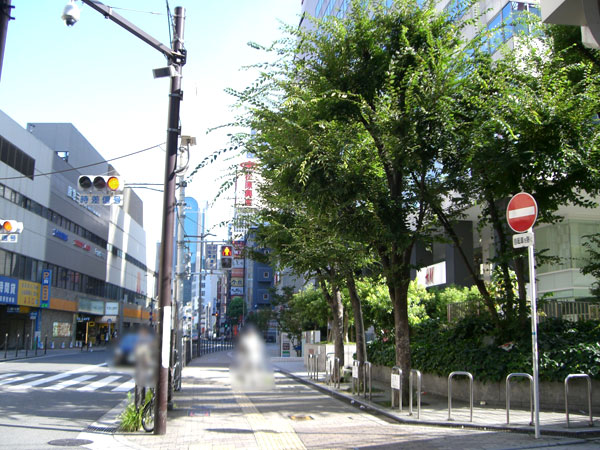 7.外に出ると横断歩道があります。 (左前方のJR高架下は「EST」、右前方の屋上に観覧車のある建物は「HEP FIVE」です。)