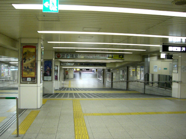3.地下に降りたら、通路はすぐに二手に分かれているので右に進んで行きます。(右の「四つ橋線方面」です。逆方向は御堂筋線方面になります。)