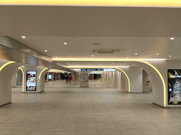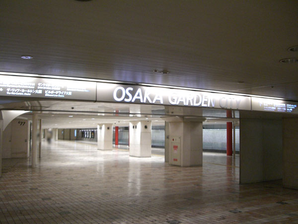 6.広い通路を進んで行くと長い地下通路へと続いていきます。 この長い通路をガーデンアベニューと呼んでこの地下通路が繋がる高層ビル群のエリアが大阪ガーデンシティです。 ハービスOSAKAなどにも繋がっています。
