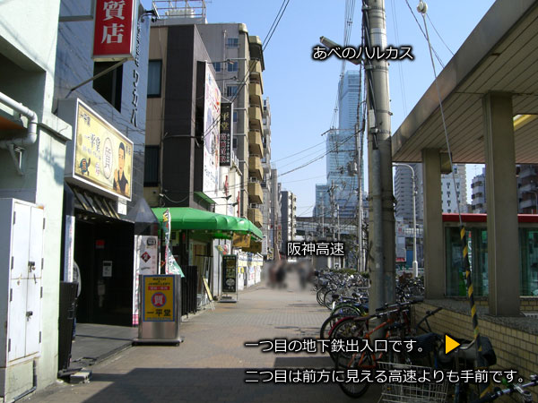 3A.JR線と並行に進んで行く感じで(右手は幹線道路)そのまま進んで行き、前方に見える高速道路の手前まで行きます。 (遥か前方には日本一高い高層ビルのあべのハルカスが見えます。)