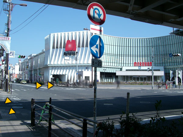 2B.東口改札から左に行くルートは横断歩道を2回渡ってMEGAドンキのある方に向かいます。