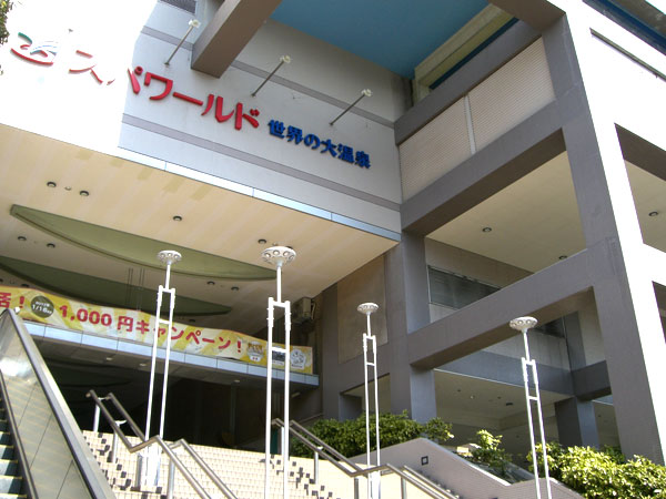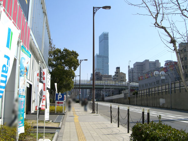 3B.こちらのルートは天王寺の地形の関係でなだらかな登り坂となってます。進んで行くとドン・キホーテの次はスパワールド(世界の大温泉)があります。 スパワールドを越えてすぐの所にジャンジャン横丁への階段があるので降ります。(前方に見える高速道路より手前にあります。)