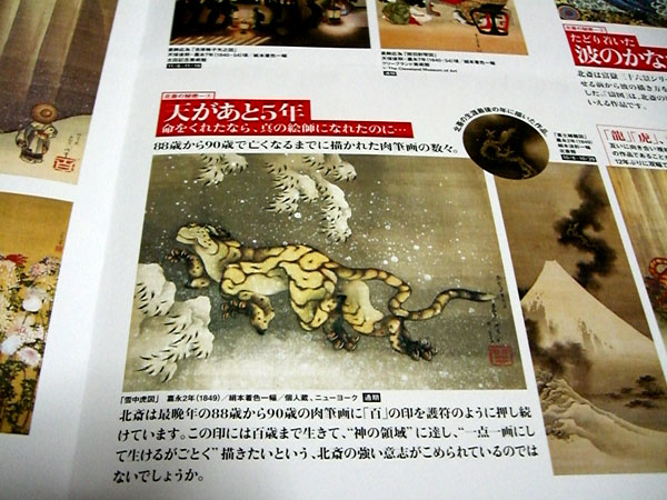 〇 北斎の60~90歳に焦点を当てた展示会ということもあり、浮世絵だけでなく肉筆画の作品も多く鑑賞することができます。 肉筆画は北斎の筆遣いを感じることができ、展示コースの最終エリアにある「雪中虎図」は見応えがあります。