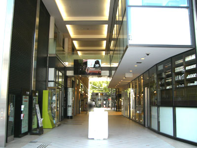 NU茶屋町の1階中央が吹き抜けの通路になっていて、通り抜けると道路を挟んでNU茶屋町プラスがあります。