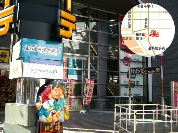 NGKの向かいのYES-NANBAビルの5階には、若手が出演する「よしもと漫才劇場」、地下1階には「NMB48劇場」があります。
