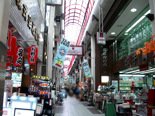 道具屋筋商店街は、千日前筋の南端から続くアーケードの商店街で、料理関係のプロも利用する料理道具を取り扱う専門店が集まった約150mほどの商店街になっています。