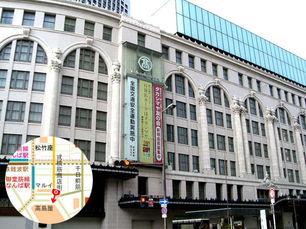 戎橋商店街の南端は、目印としてもわかりやすい高島屋百貨店が目の前にあります。