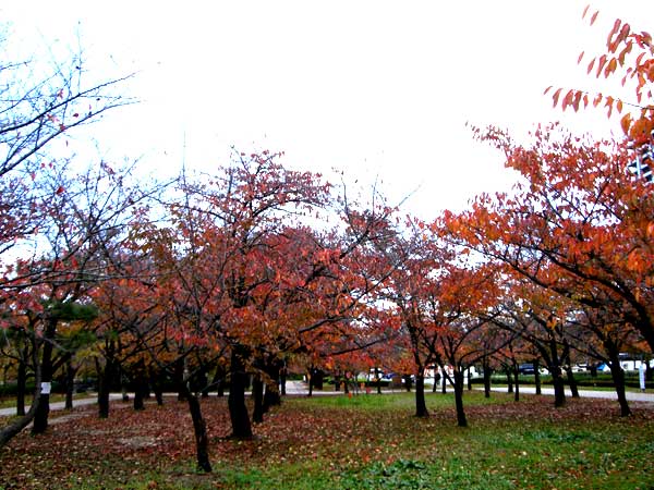 桜の紅葉は、赤・橙・茶と赤系の色味で、もみじの鮮やかな紅色ほどではないですが、秋を感じることが十分出来ると思います。