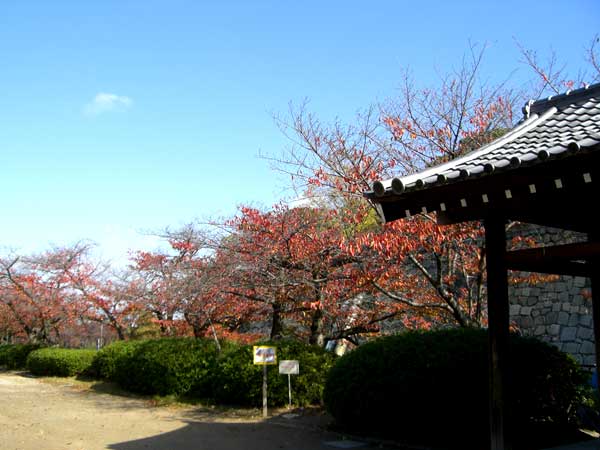 西の丸庭園は有料ですが、ソメイヨシノなど約300本の桜の木があり、天守閣を背景にしても桜の紅葉が楽しめます。