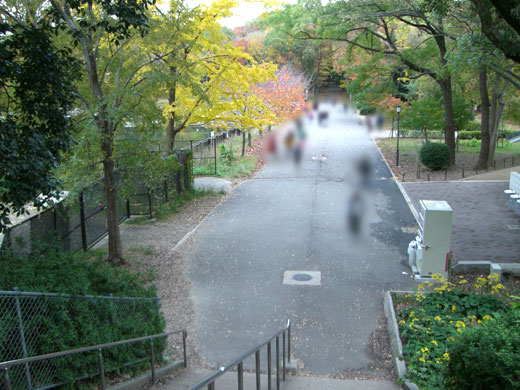 3.階段を降りて少し歩くと左右に続く大きな歩道に交差しますが、この手前の右側に4の「もみじ園」があります。