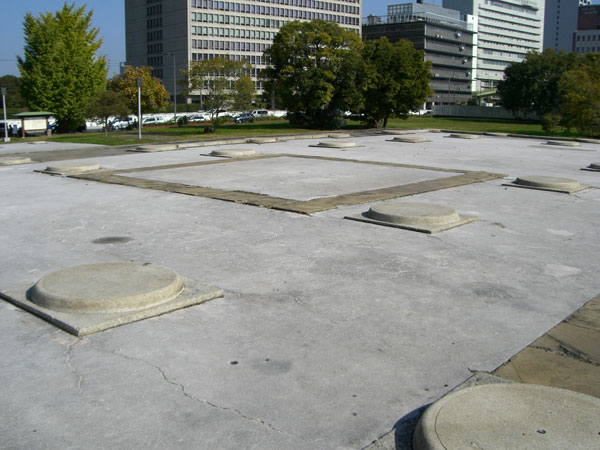 昭和36年の発掘調査により、飛鳥から奈良時代にかけて前後2期の難波宮跡が確認されました。史跡の周辺を公園として整備し、難波宮跡には基礎のところを石などで盛り上げてわかりやすく再現しています。