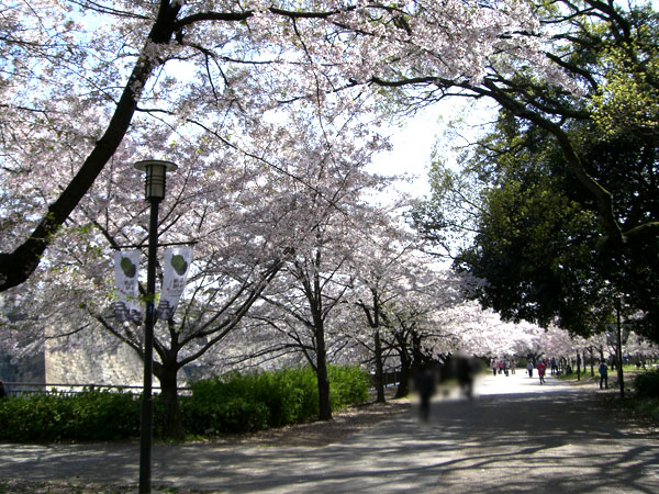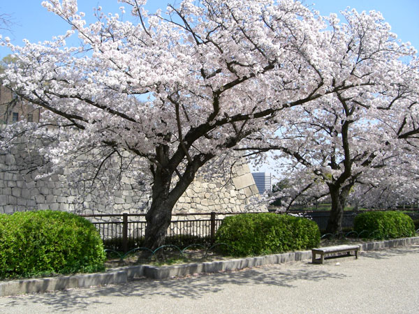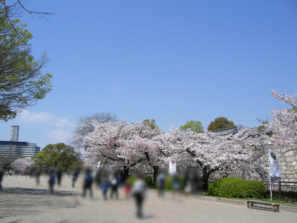 桜の木は、大阪城公園の全体にありますが、外堀の南・東と西の丸庭園に多く、内堀と本丸は少なめのように思います。