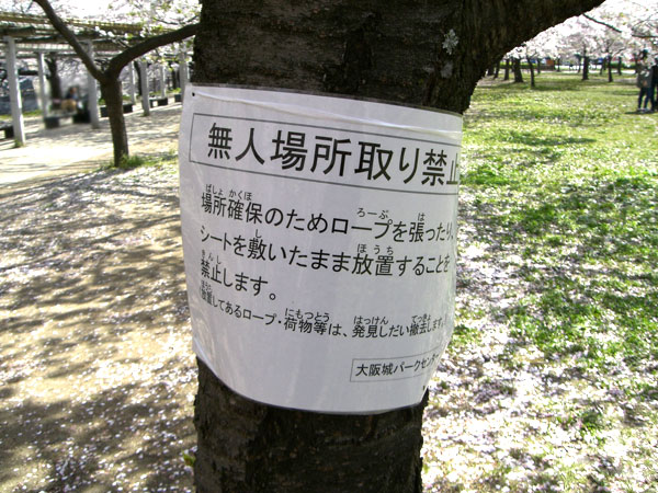 場所取りのルールがあるので守りましょう。