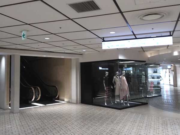 右に行くと大丸百貨店があり、JR大阪駅構内の南側付近に行けます。左に行くと阪神電車の改札があり、ディアモール大阪の地下街に行けます。