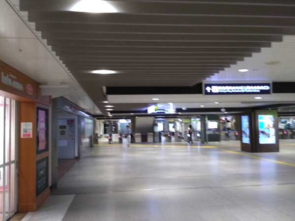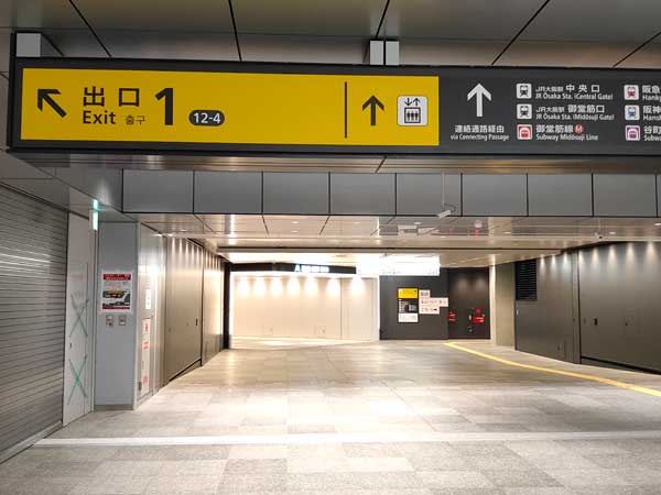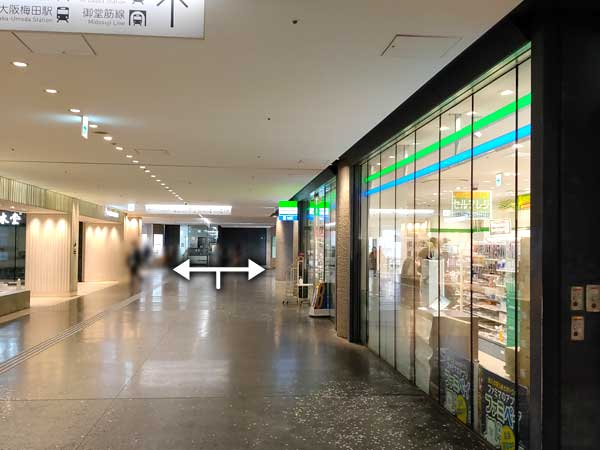 1.地下ホームから地下1階のフロアに上がると、「うめきた地下口改札」があるので、ここから出て右に行きます。