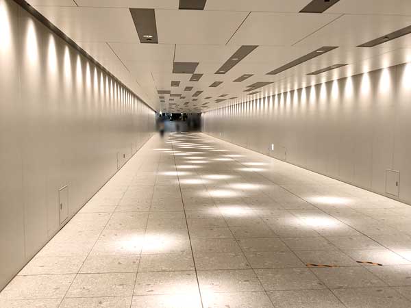 JR大阪駅の地下に新設された「うめきた地下口改札」から阪急高速バスターミナル「☆e」までの行き方は、地下通路と2階の連絡通路(歩道橋)を利用してバスターミナルのある阪急三番街まで行くルートです。 (高速バスまでの行き方の詳細は下記にあります。)